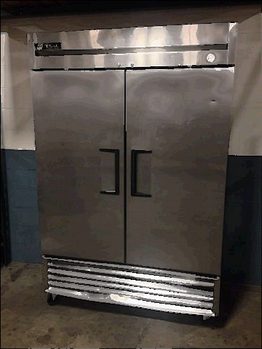 True 2-Door Reach-In Freezer T-49F ********************************************************* This freezer is not working due to dysfunctional compressor and/or other issues. Most other parts are in good condition. Shelves are included.