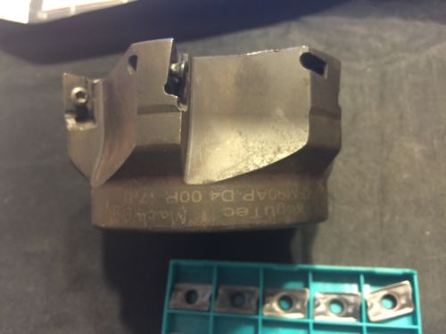 2" Used Milling Cutter w/ Box of Korloy LMNX151008PNR-MM PC5300 Carbide Inserts
