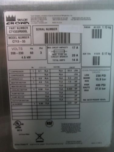 Ice Cream Taylor C723 Single Phase Air Cooled