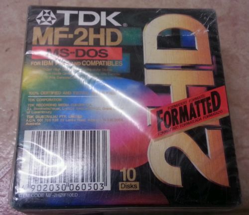 Genuine TDK 3.5" Micro Floppy Disks MF-2HD Super EB 10-Pack Sealed New in Box