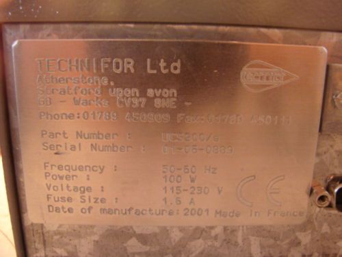 Model | Technifor Ltd P/N VCS200/e Freq 50-60Hz Power 100W |