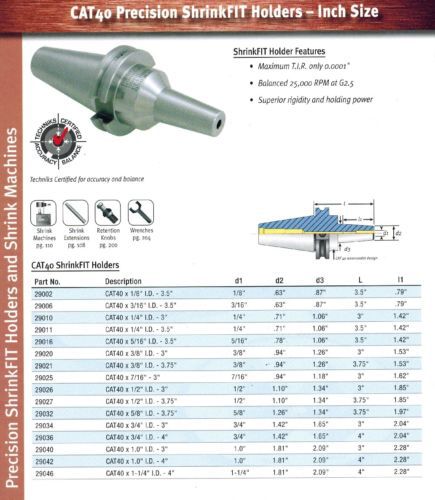 KENNAMETAL CAT40 1-1/4" ENDMILL HOLDER MORE LISTED CAT 40 END MILL LOT C11306