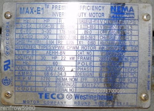 WESTINGHOUSE EP7/52 7.5 HP, 3 PH, 230/460V, TEFC, 3510 RPM, 213T FRAME