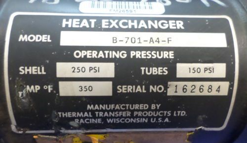 Used Thermal Transfer Heat Exchanger AF-1636-6-6-T-BR 300F 300 PSI