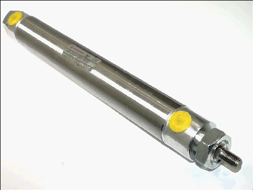 This is a New American Front Nose Mounting Magnetic Field Piston Air Cylinder, Model # 1250DNS-1.75-4 with 1 3/4 inches of stroke with a Stainless 7/16"(.437) piston threaded on the end. Cylinder measures 1.31" Diameter and has 1 1/4" Bore. Features Ground and Polished 303 Stainless Steel Piston Rod Force Exerted Approximately 1.23 Times the Air Line Pressure Double-Acting Rod threads roll formed for high strength 304 stainless steel body with mirror finish ID for long,