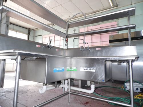 Duke CS3H18 Corner Sink three compartment with 18" left & right drainboards