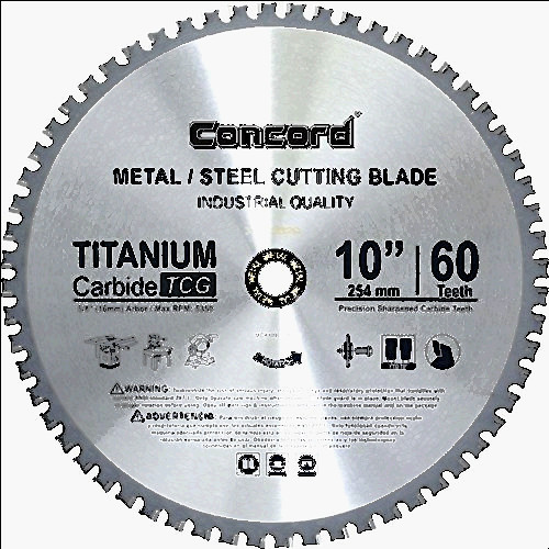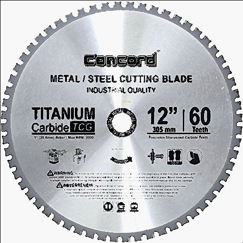Concord Blades MCB0725T060HP 7-1/4-Inch 60 Teeth TCT Ferrous Metal Cutting Blade Size: 7-1/4-Inch 60 Teeth This industrial standard metal cutting carbide saw blade has construction grade titanium carbide teeth with a TCG grind. This allows for it to make easy cuts through metal rods, thin rebar, steel sheets, steel studs, steel pipes and channels. Lasts longer than abrasive discs when cutting most mild steels up to 1/8".
