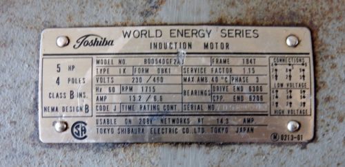TECO EP0036 MAX-E1 3PH Premium Efficiency Inverter Duty Motor 6 Pole 213T AEHH8N