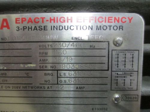 Leeson Electric Brake Motor 1760Rpm PH3 10HP 230/460V 140637 C21ST17FC8B