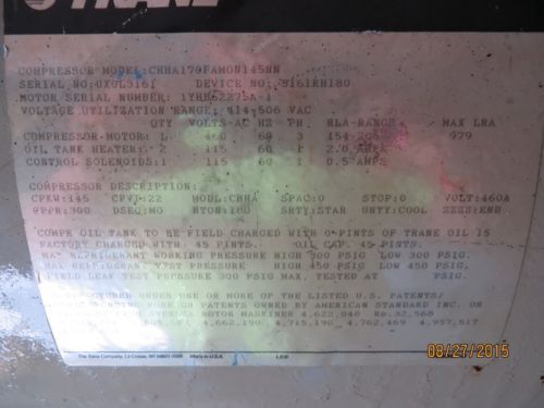 TRANE 25 TON R.T.U. - 1 YEAR OLD - M # YSD300F3RHA022V / S # 140410119D
