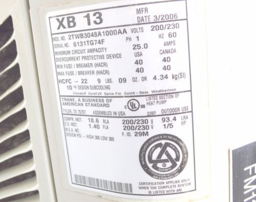 Model | Trane XB 13 & 2TEC3F48A1000AA |