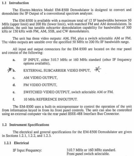 | Brand | Electro Metrics EM-8500 Demodulator |