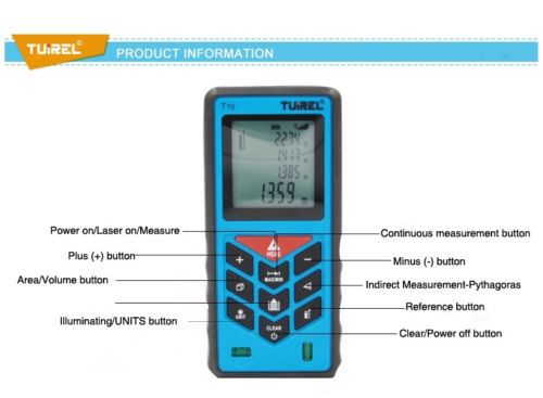 Tuirel T70 Laser Distance Meter Range Finder Accuracy of ±2mm 70m/229ft/2755in
