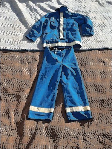 First off, NOTE: You will be bidding on a COAT AND PANTS here! SO now that your excited, come closer let me tell you about it. The shell is like a gold/yellow, the trim is bright lime triple trim, the velco on the coat you see in that one pic is kinda coming loose, you see the labels, and the zipper closure on the pants in another pic.