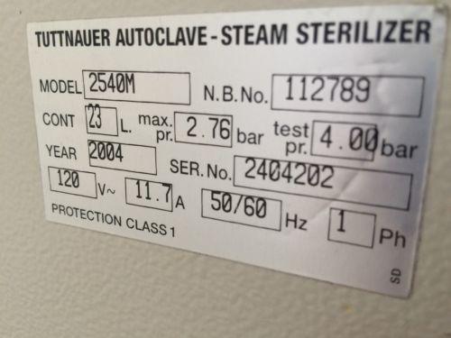Autoclave Tuttnauer 2540M 120V Steam Sterilizer Tattoo Dental Veterinary