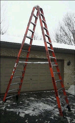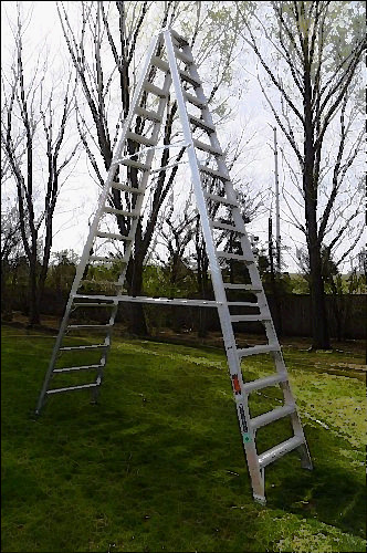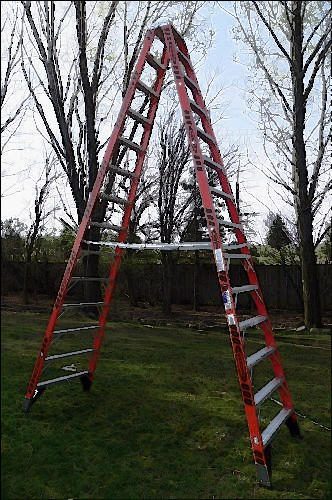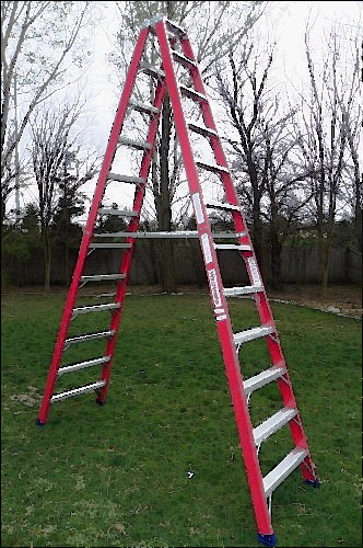 USED IN VERY GOOD CONDITION!!!!!!! 20 FT TALL Features Heavy gauge aluminum extruded top with thick side plates Back-up aluminum plates reinforce all top connectors Shoulder bolt and lock nut on top hinge 4 solid aluminum rivets attach top to each rail Slip-resistant TRACTION-TRED steps are double riveted and knee-braced Extra heavy duty internal aluminum spreaders SPECIFICATIONS