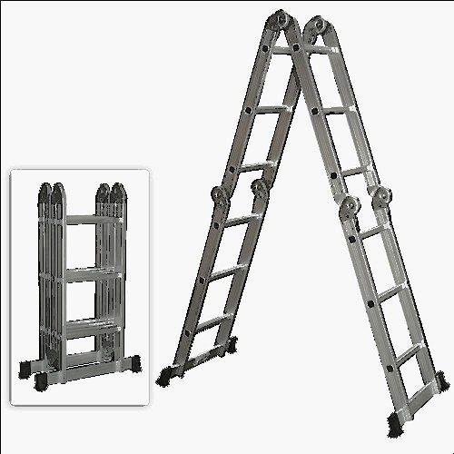 Product Description With A Sturdy Aluminum Construction, This Multi-Purpose Ladder Makes A Handy Addition To Any Home. It Can Be Used As A Telescoping Ladder, Twin Stepladder, Stairway Stepladder, And As Two Scaffold Bases. Because Of The Rational Design, The Hinges Will Automatically Lock Into Position Once The Ladder Is Unfol