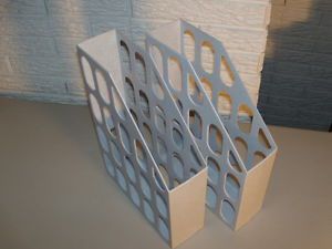 Two Durable Hard Plastic Magazine Holders - About 3" x 12.5" x 9.5" No.3&4