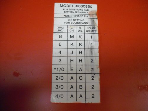 T & B Thomas & Betts 13454 Crimping Tool Die Color Code Red Blue Gray Brown NOB
