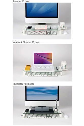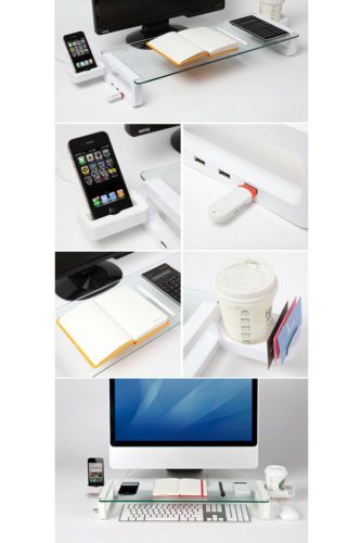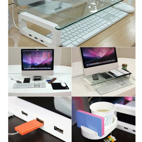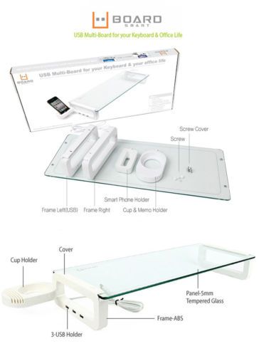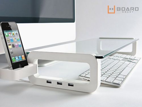 U BOARD SMART Tempered Glass Monitor Stand USB 3 Ports Multi-Monitor Shelf Black