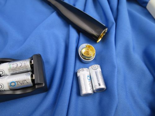 | “There is some sticker residue and minor scratching on the surface, but the lens of the light is clean and scratch free. The light is powerful, and both sets of batteries take and hold a charge. Manufactured in 2014” |