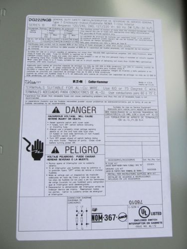 UNUSED! EATON CUTLER HAMMER 30 AMP 3-POLE GENERAL DUTY SAFETY SWITCH DG321NGB