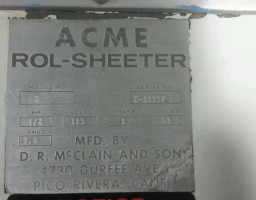 ACME Dough Sheeter Model 88-6 Dough Roller Laminator Moulder Bakery Equipment