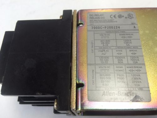 USED ALLEN BRADLEY 700DC-P400Z24 SER.A,700DC CONTROL RELAY 24V COIL TYPE P, EB