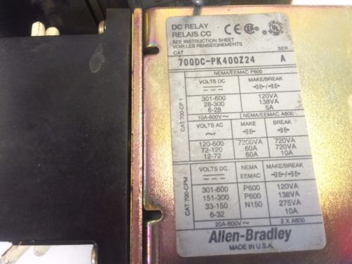 USED ALLEN BRADLEY 700DC-P400Z24 SER.A,700DC CONTROL RELAY 24V COIL TYPE P, EB