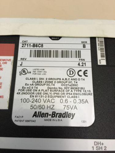 ALLEN BRADLEY AB PANELVIEW 600 2711-B6C20 2711B6C20 SERIES B;C ETHERNET