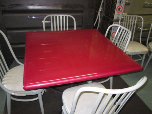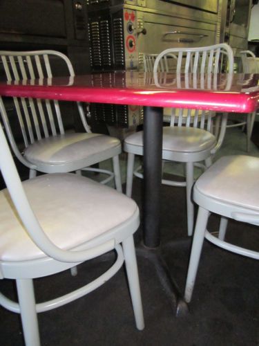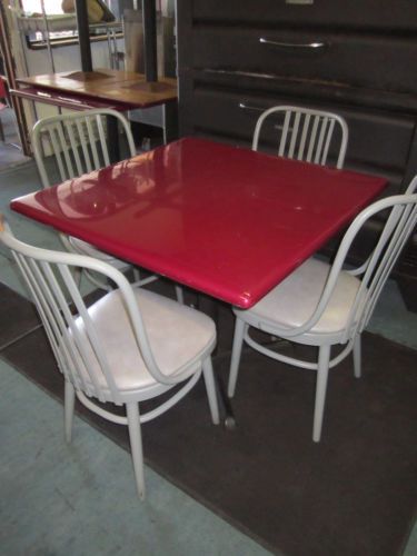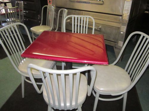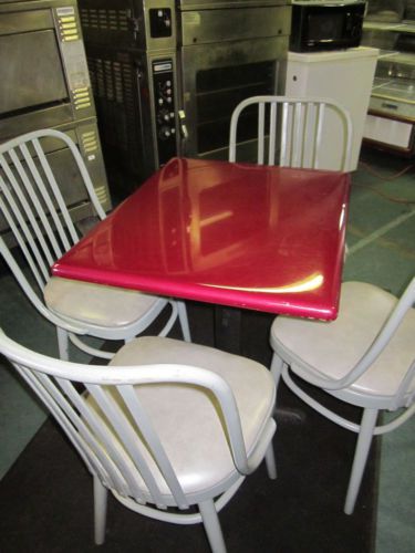 SLIGHTLY USED RETRO RESTURANTOR HOME BOOTH WITH TABLE-RED VINYL W BLACK STRIPES