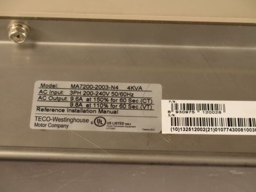 USED TECO DRIVE VFD VARIABLE FREQUENCY MA7200-4005-N1 7.5KVA 3PH 380-480V 3PH