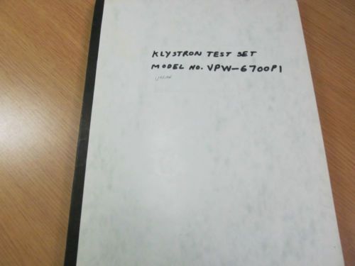 VARIAN VPW-6700P1 Klystron Test Set Operations Manual w/schematics #45953