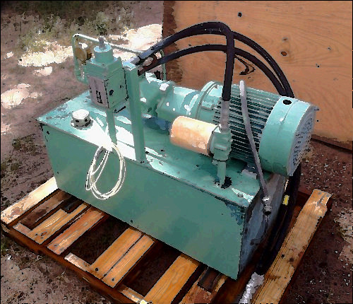 Vickers Hydraulic Power Unit - 5 Gal, 3000 PSI, 5HP Motor This unit was removed in good working condition. Only reason it was removed is because the building was coming down. Check the pictures for details on the motor, valve, filter, etc.