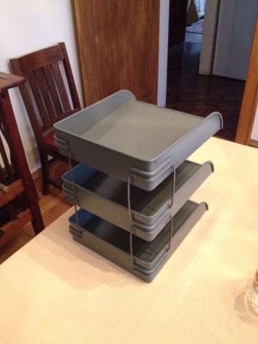 Vintage Hamilton Skyline Tier-Tray Steel Desk File Tray