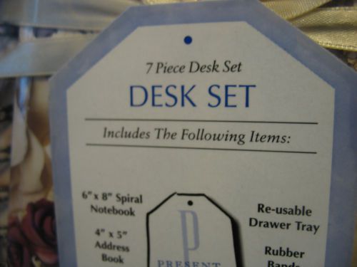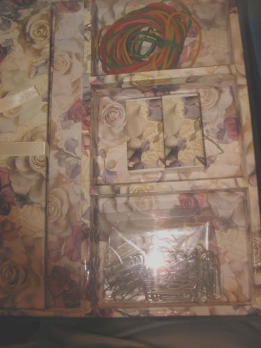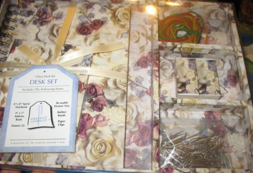 Country Rose Desk Set w/ Clock Frame & Memory Box Original Box 3 Piece Set