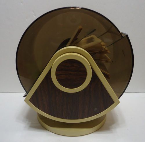Vintge Rolodex W/ Blank Cards-SW 24C - Wood Grain Look-Swivel-Smoke-8" Tall