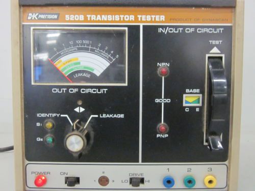| Seller Notes | “For sale is a vintage B+K Precision 520B Transistor Tester by Dynascan. I only have the ability and equipment to test this item for power and it does power on. I do not have the test leads. Because I cannot guarantee 100% functionality, it is being sold AS-IS for parts or repair even though it may work. This item is in good cosmetic condition. It does have some minor scuffs/scratches and other markings from previous use and age.” |