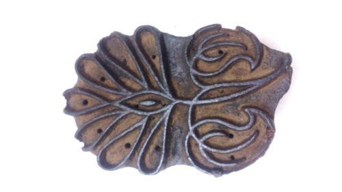 ANTIQUE WOOD HAND CARVED TEXTILE FABRIC TISSU PRINTER BLOCK STAMP FLORAL PAISLEY