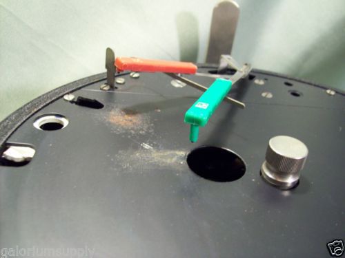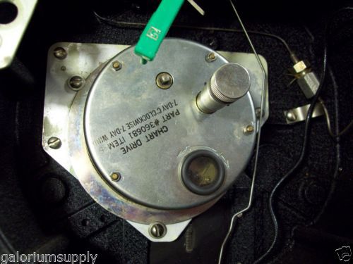 | “Device is untested. The winding mechanism is missing the square shaped winding key. Lock on front of device is missing key as well, but is in the unlocked position and does latch. Front Plexiglas with some scuffs and light scratches. Metal plate where chart paper rests has a missing screw at upper right and some paint loss at recording pens area. Metal exterior surface with some dings scuffs and scratches in various locations. Chart pens are dry and will need replaced. No chart paper is included.” |