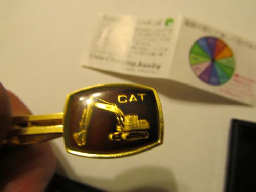 2 Vintage Caterpillar CONSTRUCTION , TIE CLASP & TIE TACK Gold tone