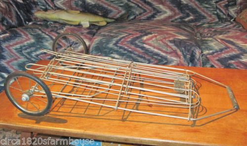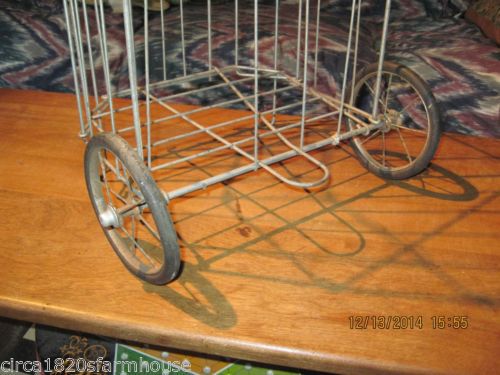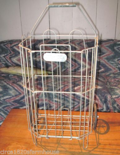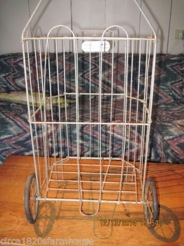 Vintage Mid-century Collapsing Metal Shopping Cart Hard Rubber Wheels Wire Spoke