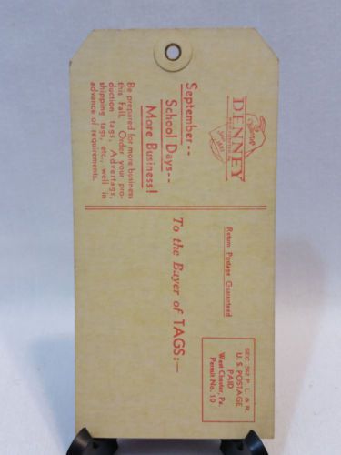 VINTAGE DENNEY TAG CO. OCTOBER 1949 CALENDER TAG - FREE SHIPPING