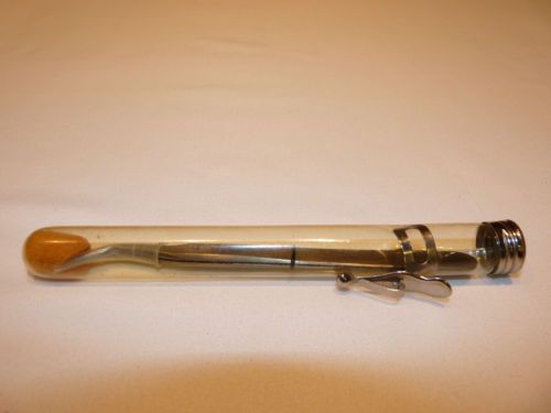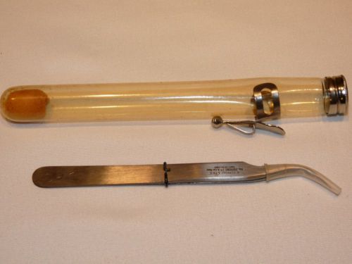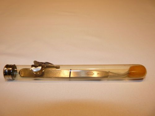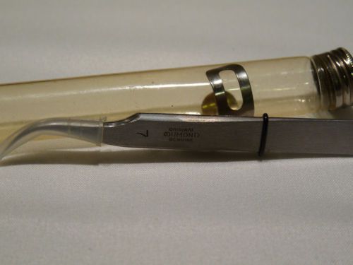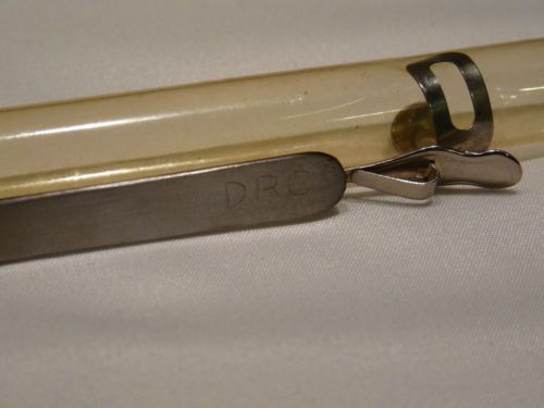 “These tweezers are in excellent condition. The tips are extremely sharp and do not show any signs of use. The metal is in great condition but there is some extremely minor pitting near the non sharp end that can be seen in the pictures that actually came from the packaging. There was an additional foam plug in the tube that had degraded over the years. The letters DRC are also lightly etched in the end.” |