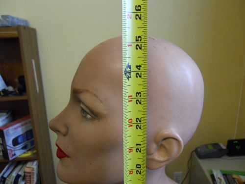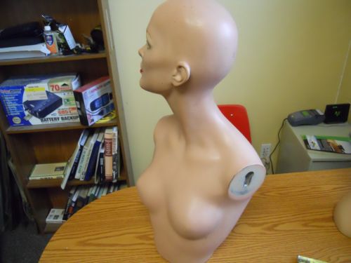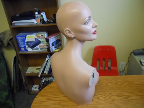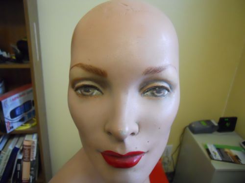 Vintage Female Mannequin Head Bust Torso Eye Lashes Left Facing plaster metal