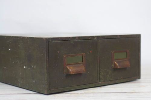 Vintage Record File Grey Metal 2 Drawer Card File Cabinet Grey Industrial