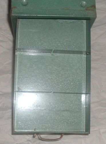 | “Vintage Green parts cabinet,With some rust spots,Please look at pictures,” |