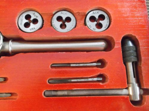VTG Greenfield 16 Pc Tap & Die Set Complete VG Cond Wooden Box Wrench Tool Metal