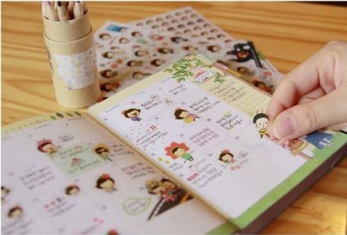 Everyday Sweet Girl Diary calendar Filofax Schedule Notebook Deco Sticker 6sheet