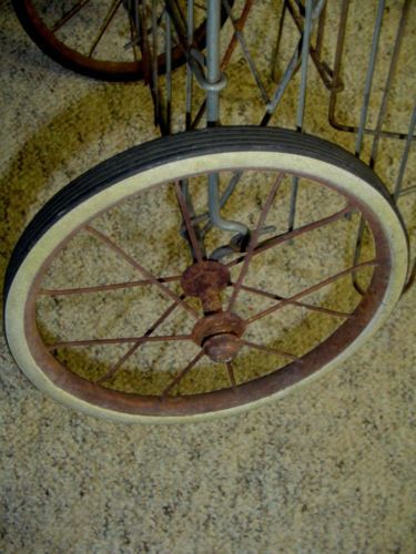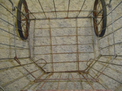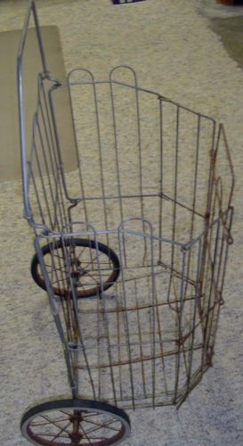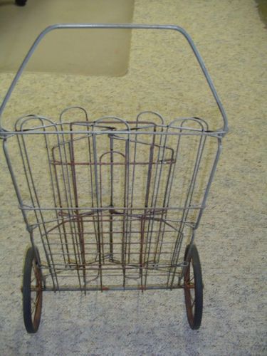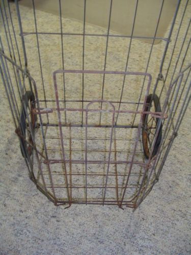 VINTAGE LAUNDRY FLEA MARKET SHOPPING COLLAPSIBLE WIRE CART BASKET 2 WHEELS RARE